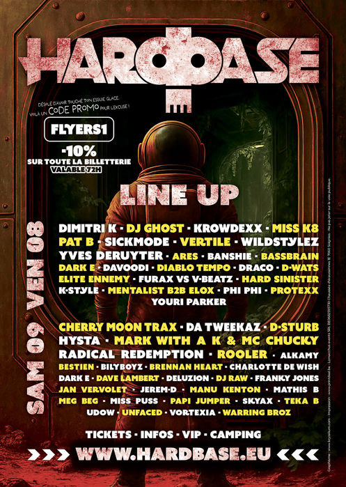 Créations de visuels pour les réseaux sociaux du festival Hardbase en Belgique, Affiche, Flyers, Bâches, Gobelets, Bracelets